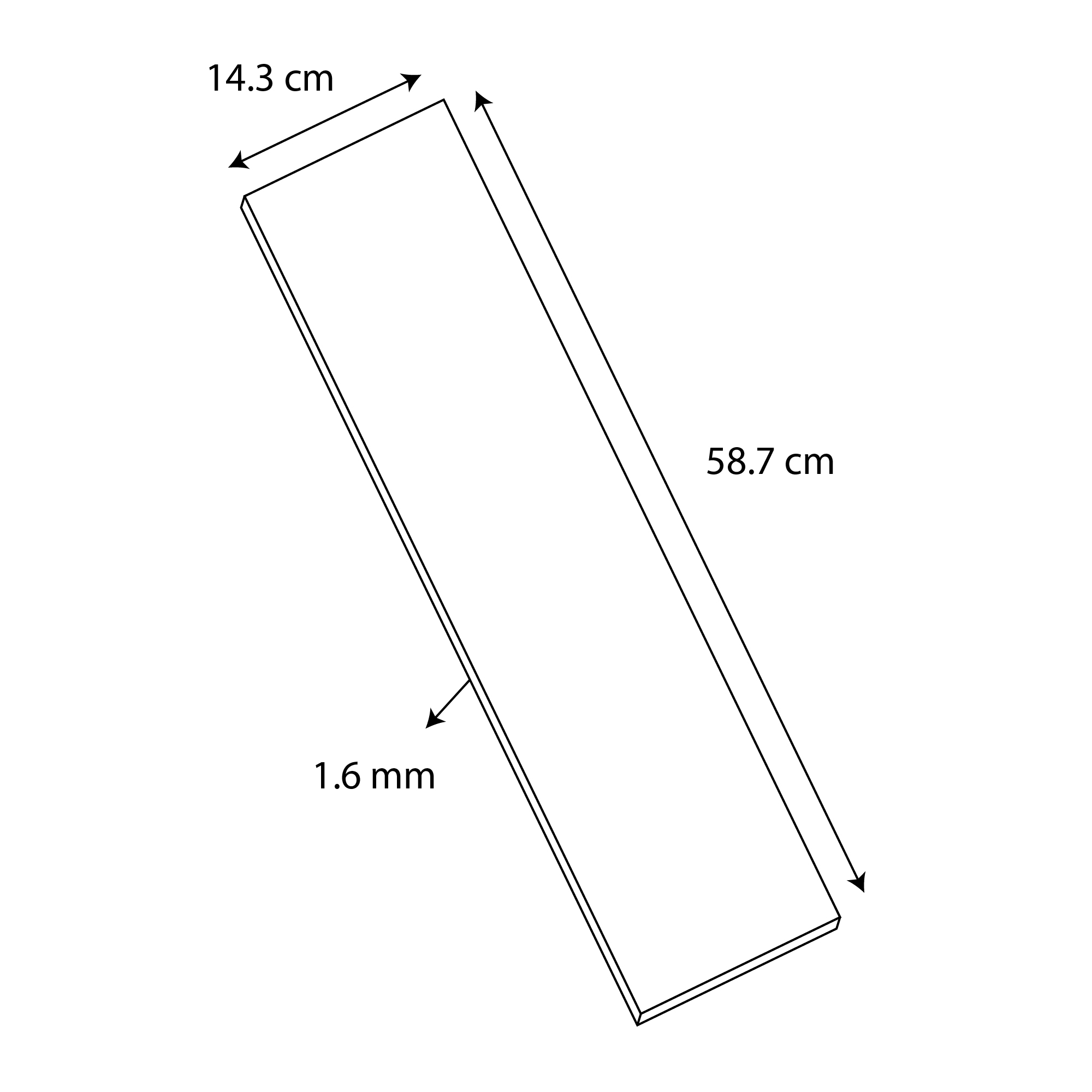 Formato: 14.3 cm X 58.7 cm. Espesor: 1.6 mm.